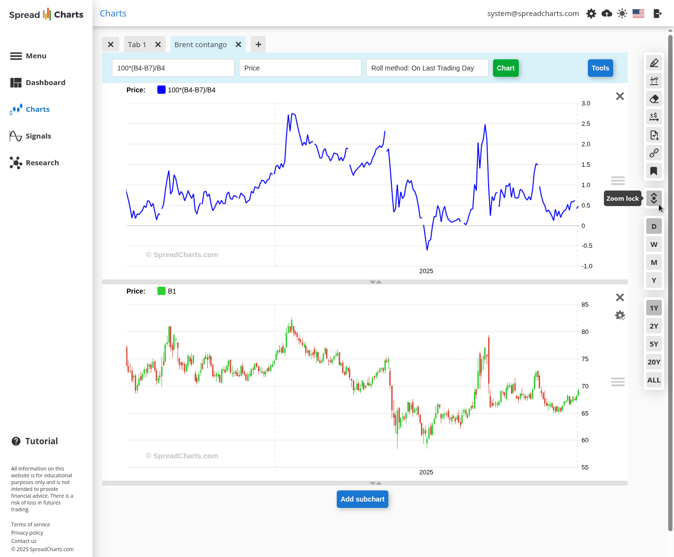 Nebyli jsme si však jistí, zda je to správný směr. Aplikace SpreadCharts je totiž unikátní — žádná jiná platforma vám neumožní pracovat s tolika grafy najednou. Je to obrovské množství dat a možnost rychle jimi procházet je nesmírně užitečné.